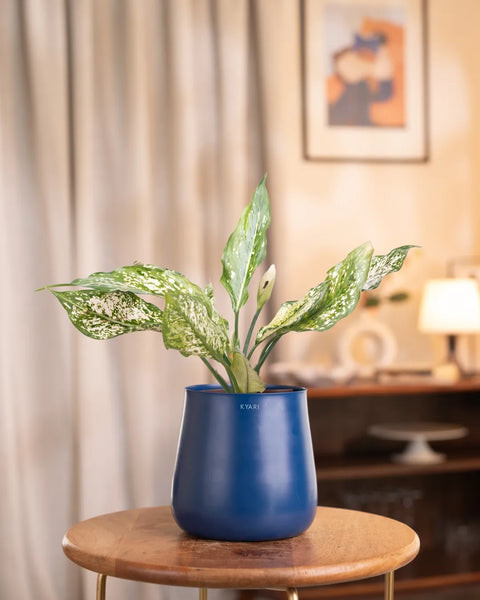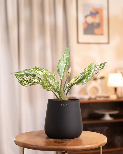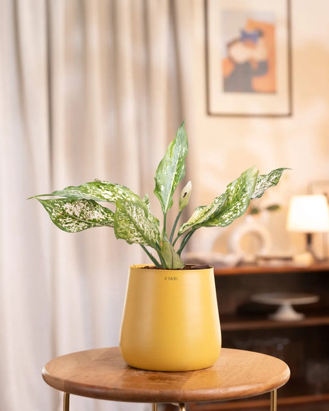 Aglaonema Snow White with Large Metal Self Watering Pot