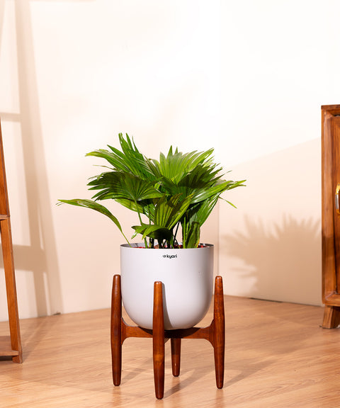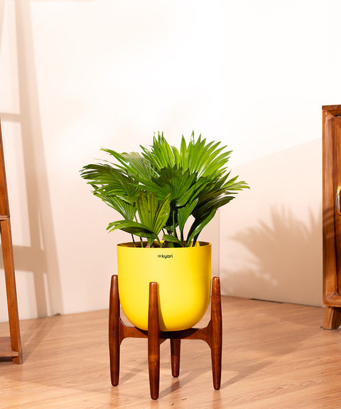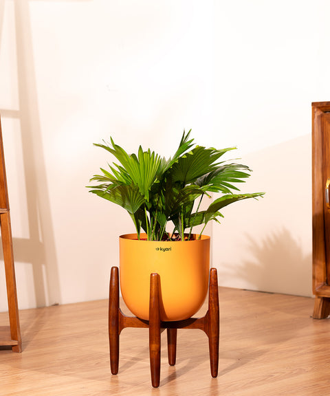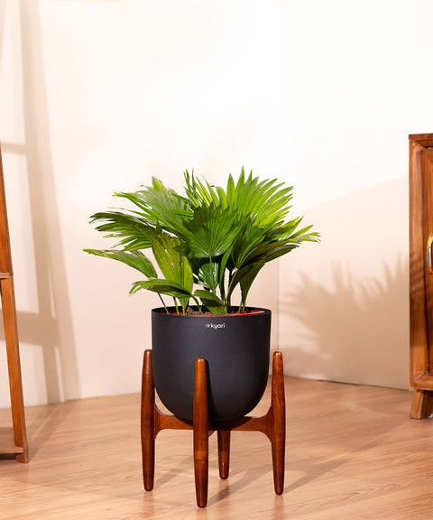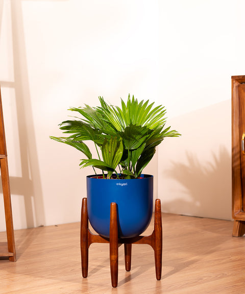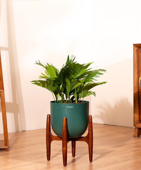 Rhapis palm with Extra Large Metal Self Watering Pot