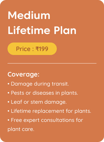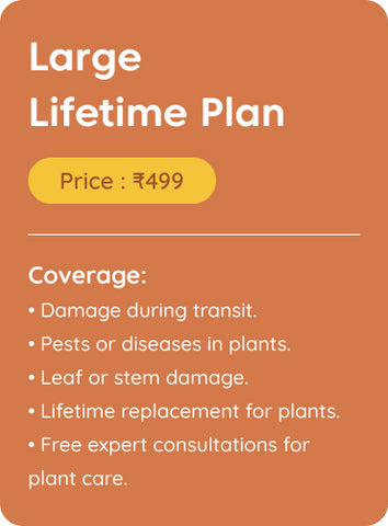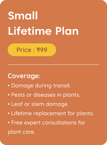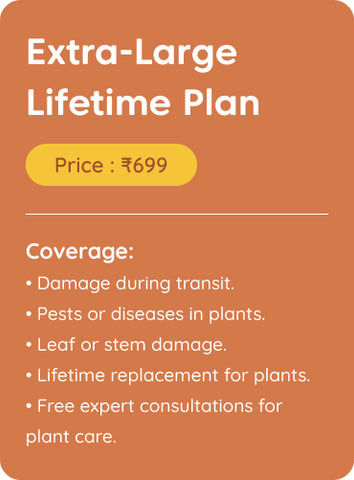 If your plant faces any issues such as pests, diseases, or significant damage, Kyari offers a lifetime replacement. Simply claim the warranty, and we will replace your plant hassle-free.