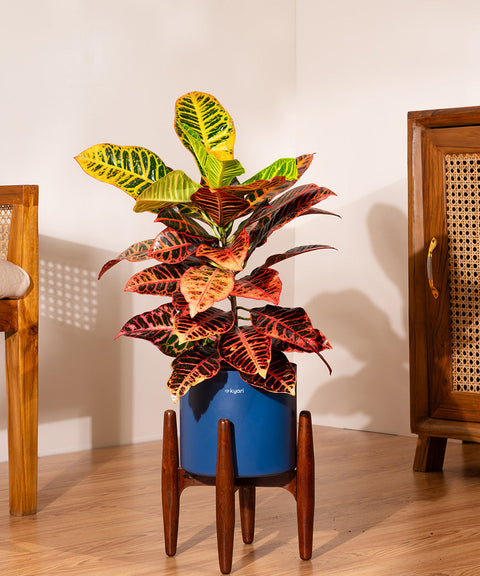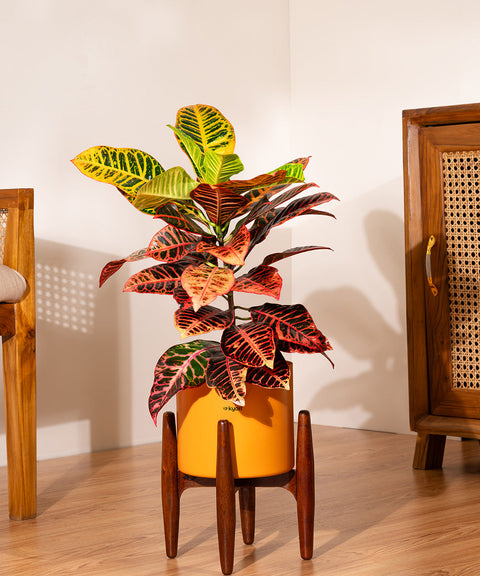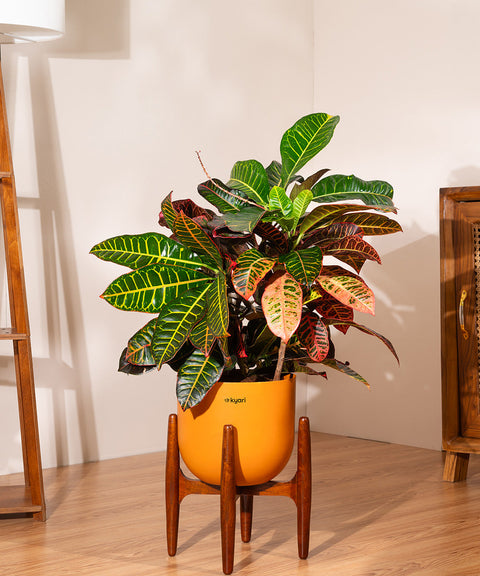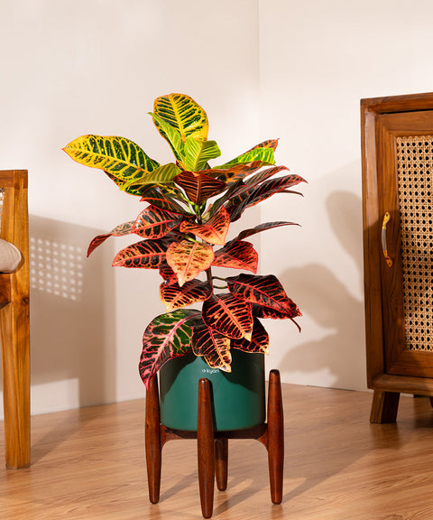 Croton Petra with Metal Self Watering Pot