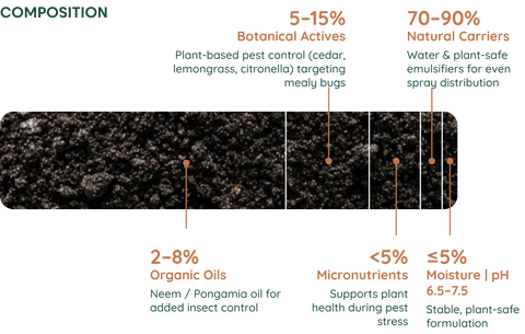 Apply at first sign of mealy bugs ,repeat every 5–7 days until controlled